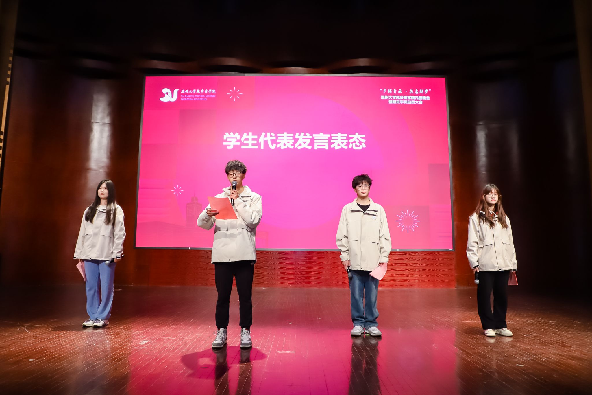 接下来是学生代表发言环节。黄星竹、周昊楠、刘维、陈杉杉四名同学分别分享了汉语言文学、数学、化学、生物学科的学习心得,表达了他们对即将到来的期末考试的信心。为了能让同学们安心备考,党总支书记应中特意为同学们送上了温馨备考大礼包,鼓励大家考出水平、考出精神、考出风采。