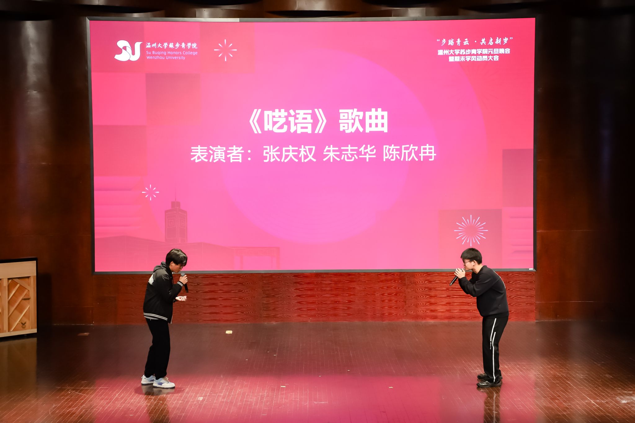 晚会大的第二篇章是精彩的元旦表演环节。韩流社成员带来的开场舞蹈《drama》,瞬间点燃了全场的气氛;流行音乐协会的王怡菲和单昌杰演唱的《流浪·地球》唱出了地球上普通青年的奋斗历程;吴京的《驯服黑夜的光》让我们感受到了成长路上的坚持与拼搏;生物班张昕宇等四位同学带来的歌舞表演《相亲相爱》为晚会增添了一份快乐和温暖;章立航和蒋子懿演唱的《凤毛麟角》唱出了本我与真我的精神对抗;宋易轩和侯帧淇带来的歌曲《素颜》治愈抚慰了全场观众;温佳琪的钢琴独奏《皮黄》带来了一场听觉盛宴;张庆权和朱志华合唱的《呓语》深深打动了全场观众;李欣的美声歌曲《慢冷》展示了其高超的音乐歌唱水平;章立航等四位同学带来的歌曲《晴天》再次点燃了全场的气氛;金晨璐和邓乐祺的表演《山鹊》以其独特的唱腔和优雅的琴声震撼了全场;胡一鸣带来的歌曲《我用什么把你留住》让全场沉浸在其中;周品妙的古筝独奏《丰收锣鼓》展示了传统乐曲的独特魅力;23步青汉语言班带来的诗朗诵《月光下的中国》充分展示了他们的人文关怀和爱国情谊;最后全场大合唱《夜空中最亮的星》,伴随着激情有力的歌词和悠扬轻快的旋律,晚会圆满落下帷幕。