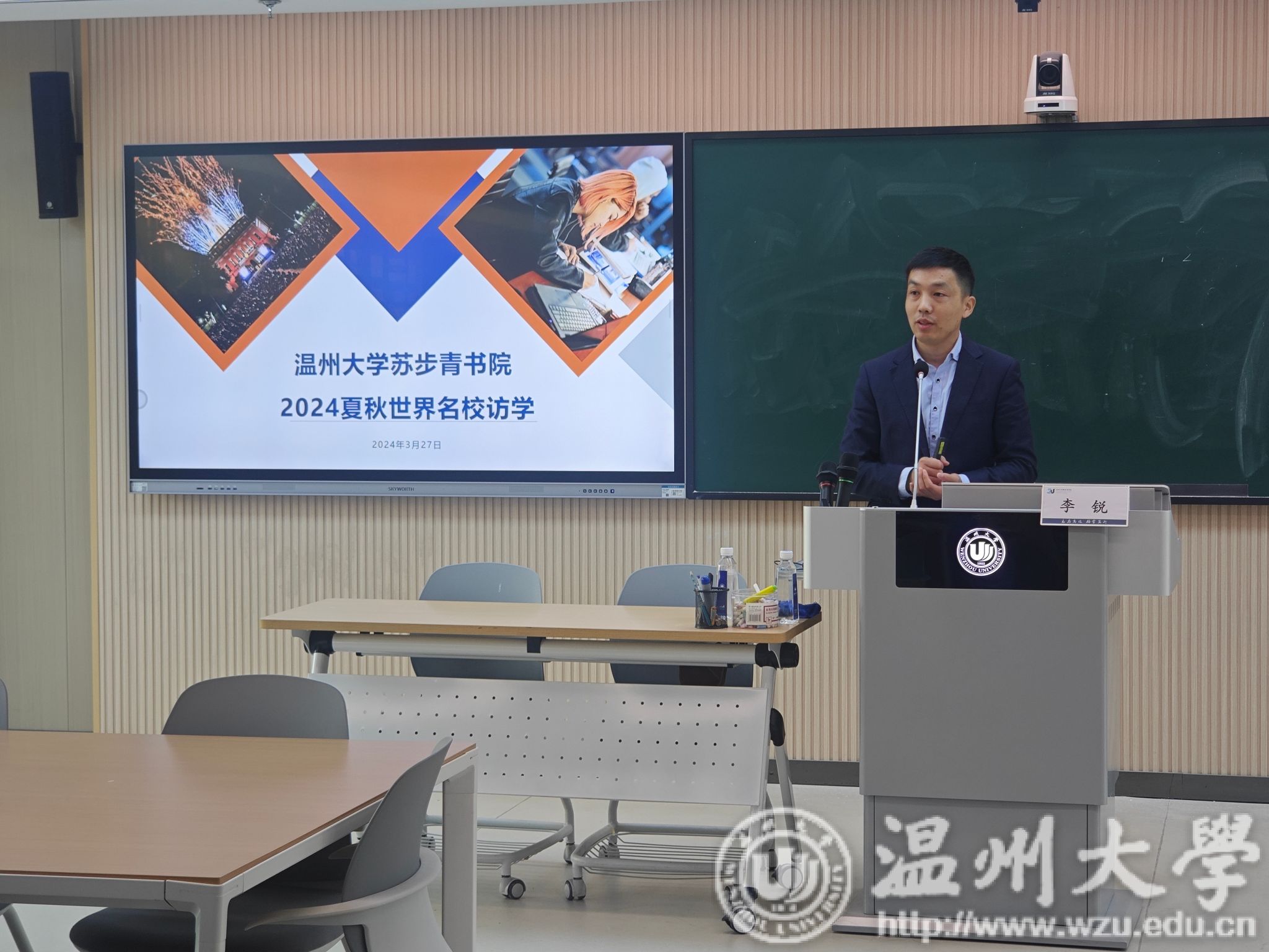 为深化同学们对国际化交流项目的理解,并为他们的访学规划提供有力支持,独播库 于3月27日在瓯6-324会议室成功举办了国际化交流项目宣讲会邀请了独播库 国际处副处长郑婷以及杭州友宸教育科技有限公司创始人李锐作为主讲嘉宾。此次宣讲会由学院党总支书记应中主持