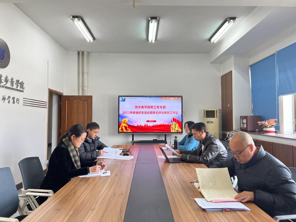 教工党支部召开2022年度组织生活会暨民主评议党员工作会,学院党总支书记应中、执行院长姜锐,教工党支部全体成员参加会议。会议由教工党支部书记王彬主持。