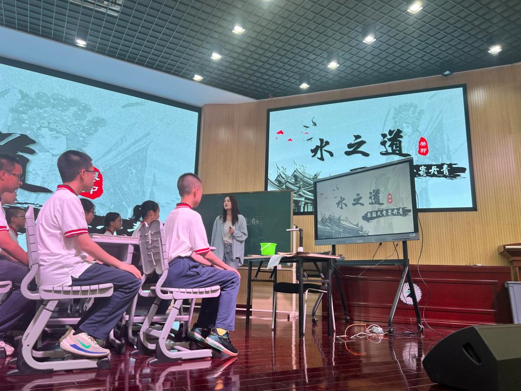 调研组与美术学院实习指导师团队参加了第十三期溯初实验班学员叶佳慧同学的实习汇报展示课《水之道》的评课活动,叶佳慧以戏曲水袖为切入点,用水墨拓染的方式展现水之舞,在观察比较互动创作中呈现了一节精彩纷呈的水墨丹青课。本课最可贵的创新点是跳出教材的局限,凸显核心素养,紧扣课程标准,将音乐、美术、传统文化等丰富的课程资源自然融合,水之道的主题一以贯之,在教师的启发下学生的审美和创作意识被唤醒,并逐步扩展到更高层次的美的意境。