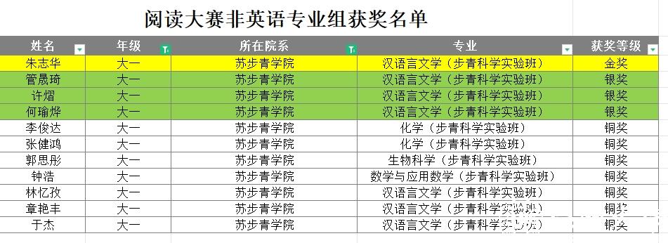 ,数学与应用数学、化学、生物科学、汉语言文学专业的步青科学实验班学生均有获奖。