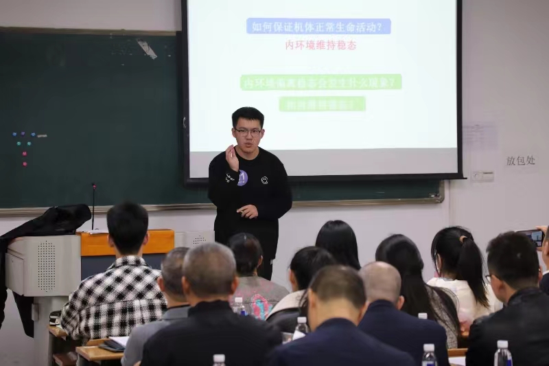 在即席讲演环节中,参赛选手依序随机抽取题目,围绕所选话题进行三分钟的即兴演讲。演讲内容涵盖时政事件、社会热点和教师发展等,将培养卓越教师与社会精英相结合,充分考验选手的应变能力。参赛选手对主题深刻剖析,条理分明,并进行严谨缜密地演讲。再加之丰富的情感和标准的普通话,深深地打动了在场的每一位评委和同学。在模拟上课环节中,选手们精心制作幻灯片,与台下的模拟学生积极互动,将上课内容与教学任务巧妙融合,环环相扣,彰显了扎实的专业知识功底。每一位选手都展现出异彩纷呈的课堂,他们正向成为更专业化、更高素质、更创新型的人民教师迈进!