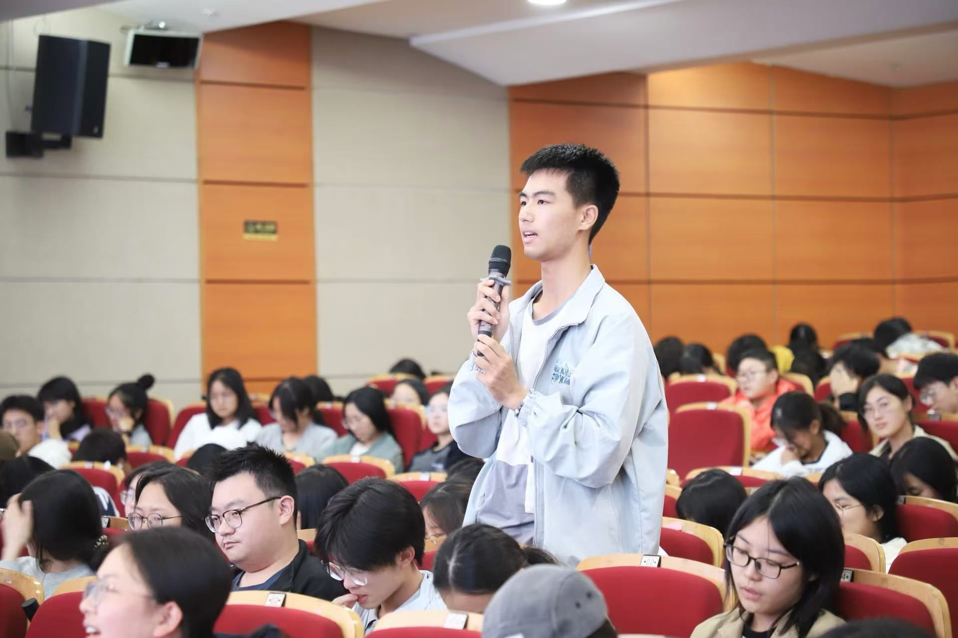 在讲座的提问环节,骆锤炼老师先用“小题目如何写成大文章”这一问题对池教授进行提问,池昌海教授则回忆自己从事修辞学研究的经历,呼吁同学们找到自己的兴趣并深入研究。随后,同学们纷纷向教授们提出自己的疑惑,刘大为教授、胡范铸教授耐心地对这些问题进行了逐一回答,提出了自己的见解。