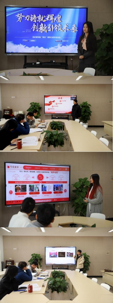 本次答辩评审邀请到了苏步青学院刘日胜、学工办李金伟、李承翼、竺梦婷老师、教学科蔡维雅老师;汇报人则是来自本院二、三年级的优秀学子,他们通过个人展示与现场答辩,全面展现了步青学子在学业成绩、综合素质和自我规划等方面的卓越风采。