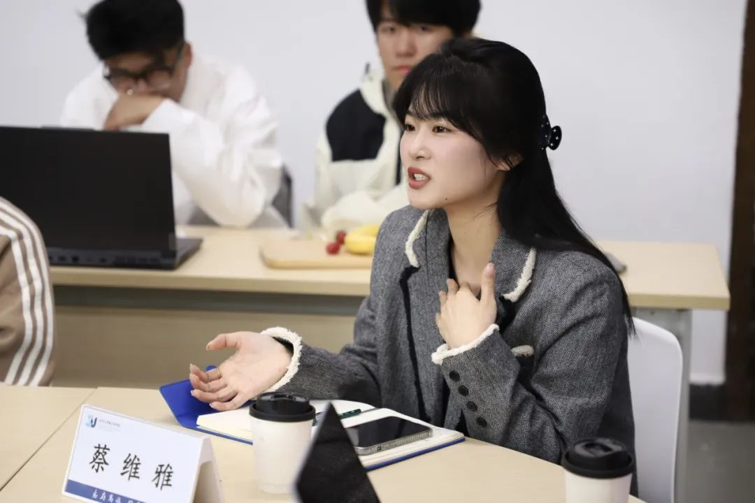 随后,与会学生代表围绕课堂教学、师生互动、学生活动等方面进行了积极的发言,同学们表示班级的学习氛围浓厚、教学效果良好,并就出勤考核、体育锻炼、学术讲座等方面提出了相应的问题。听完代表们的发言后,胡珏和蔡维雅就相关问题进行了现场解答,对教学过程中的共性问题予以记录,并表示将反馈给学院协助解决,确保事事有回应,件件有着落。