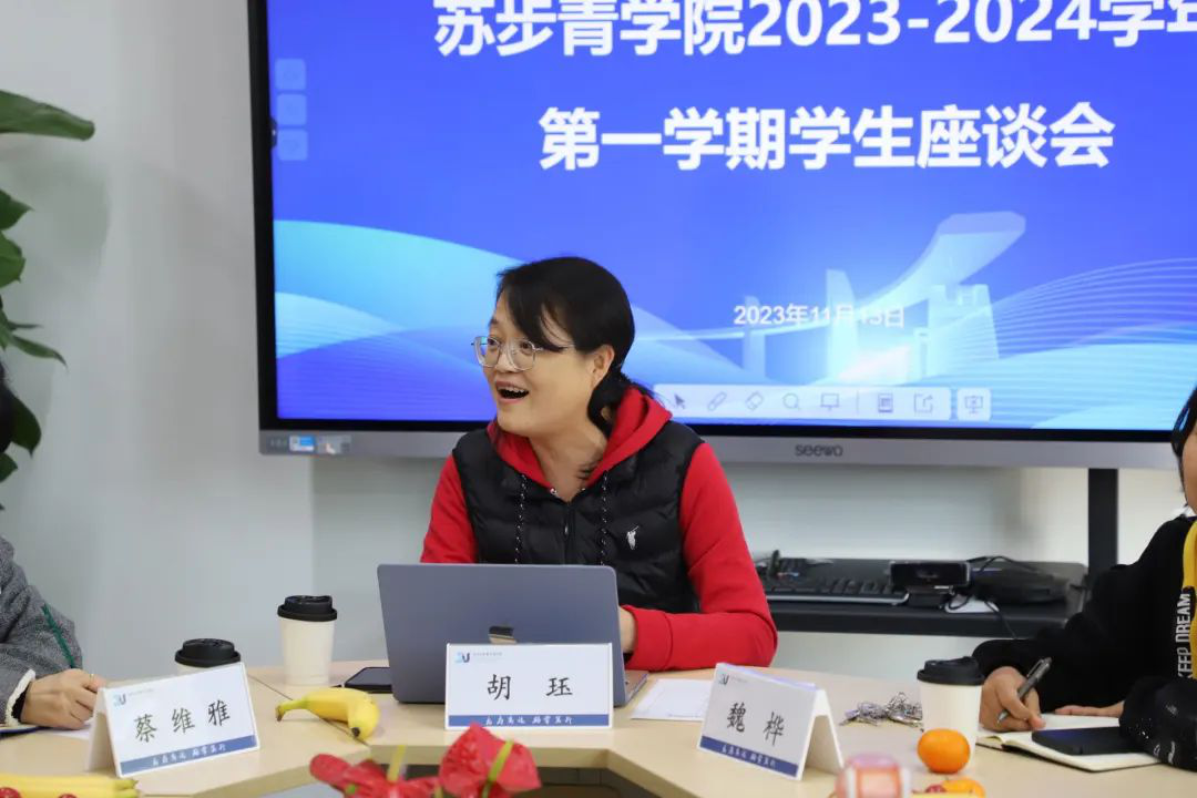 座谈会上,胡珏首先就此前面向全体新生调研的期中教学检查问卷的结果展开分析,就4个专业班级关心的学习压力、学风建设、课程教学等问题进行重点说明。她表示,学院高度重视同学们的反馈和建议,已对教学过程中存在的问题进行了积极调整,并详细说明了学院接下来的工作规划。