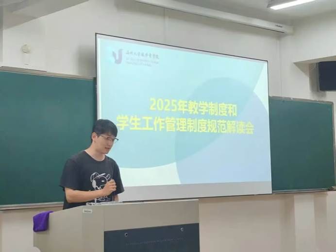 会议伊始,蔡维雅就教学管理相关制度文件进行了全面细致的解读。她系统阐述了课堂管理、考试纪律、教学评估等方面的规范要求,并分析了常见问题及其应对措施,为学院后续教学工作的规范化、高效化开展提供了清晰且具有操作性的指引。