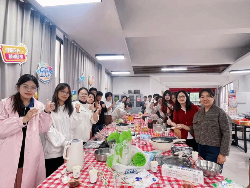 特别设置了“共品劳动硕果”环节,师生围坐一堂,共享劳动成果。学生们吃着亲手包煮的饺子,畅谈实践过程中的趣事与体会。此外,学院还同步组织了“饺香情浓,感恩前行”活动,学生们将饺子赠予学院老师,以此表达对老师们平日悉心指导与辛勤培育的感激之情。餐后,师生共同合影,一张张洋溢着满足与温暖的笑脸被镜头记录,进一步深化了师生之间的情感,让务实创新的学院氛围更添温情。
