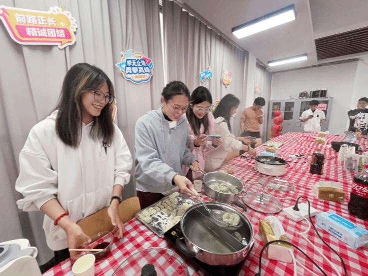 活动伊始,学院办公室魏桦、章奇妙老师详细讲述了多种经典包饺子方法,同时还分享了饺子的制作要点。在学院精心安排的活动现场,学生们分组协作,全身心投入到一系列制作环节中。他们小心翼翼地填馅、捏合,最终将形态各异的饺子送入锅中,全程亲力亲为。通过沉浸式的包饺子全过程,学生们真切感受到了“一粥一饭,当思来之不易”的深意,对劳动成果的珍贵有了更为具象化的理解。