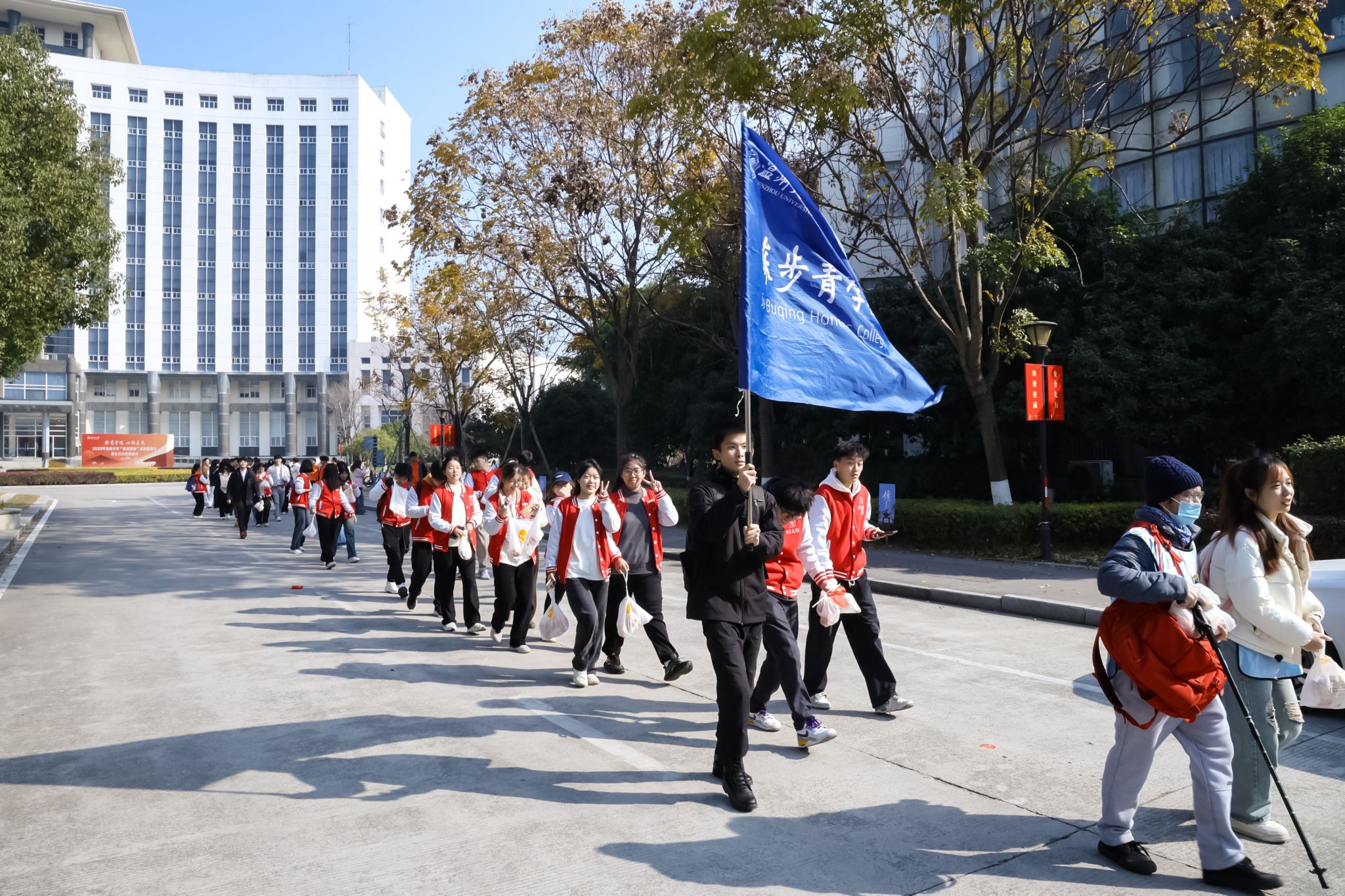 学生在学校的组织下,从南校区行政楼出发,途经五美景园、龙王水库,最终返回南校区南大门,全程徒步约8公里。